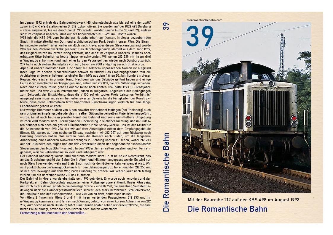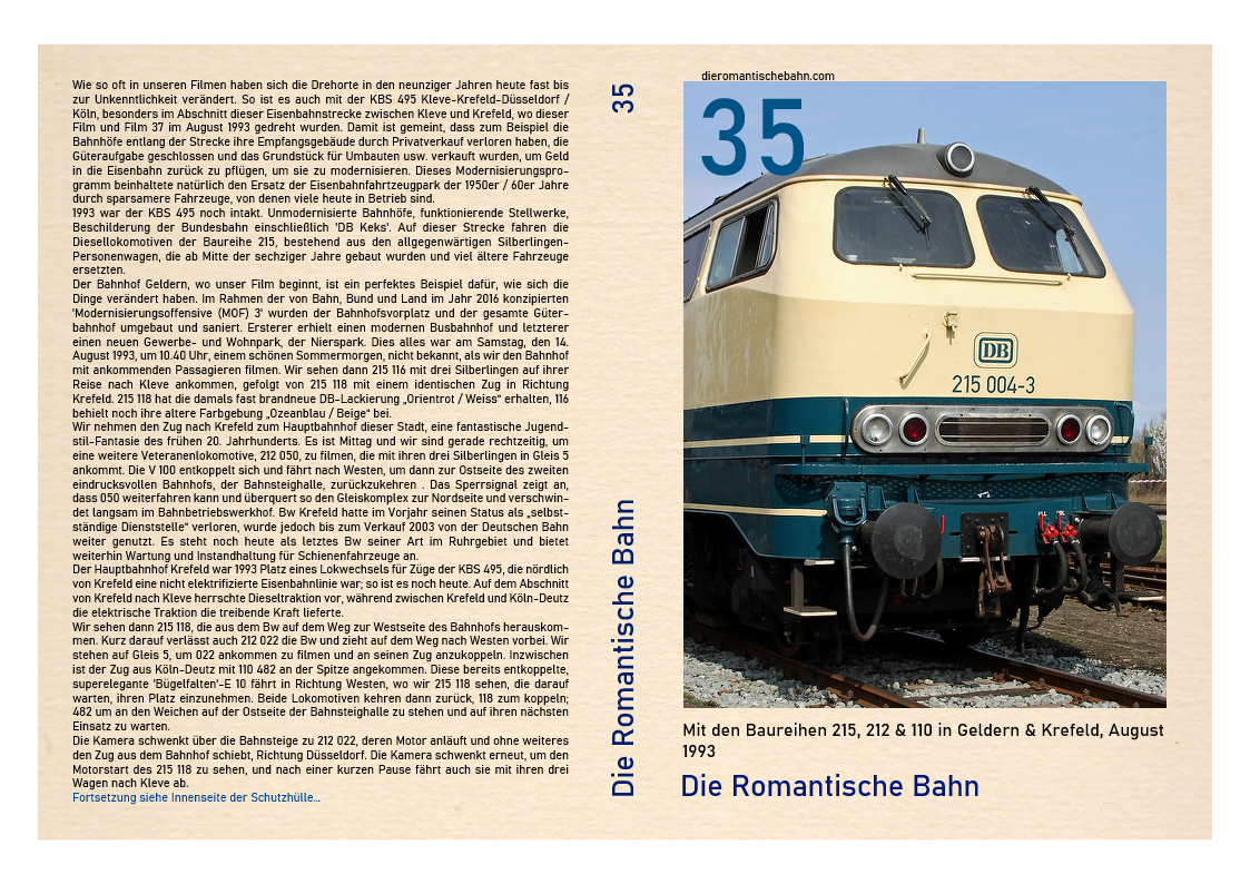 ….Der Bahnhof Geldern, wo unser Film beginnt, ist ein perfektes Beispiel dafür, wie sich die Dinge verändert haben. Im Rahmen der von Bahn, Bund und Land im Jahr 2016 konzipierten 'Modernisierungsoffensive (MOF) 3' wurden der Bahnhofsvorplatz und der gesamte Güterbahnhof umgebaut und saniert. Ersterer erhielt einen modernen Busbahnhof und letzterer einen neuen Gewerbe- und Wohnpark, der Nierspark. Dies alles war am Sontag, den 29. August 1993, um 11.10 Uhr, einem schönen Sommermorgen, nicht bekannt, als wir den Bahnhof mit ankommenden Passagieren filmen…..