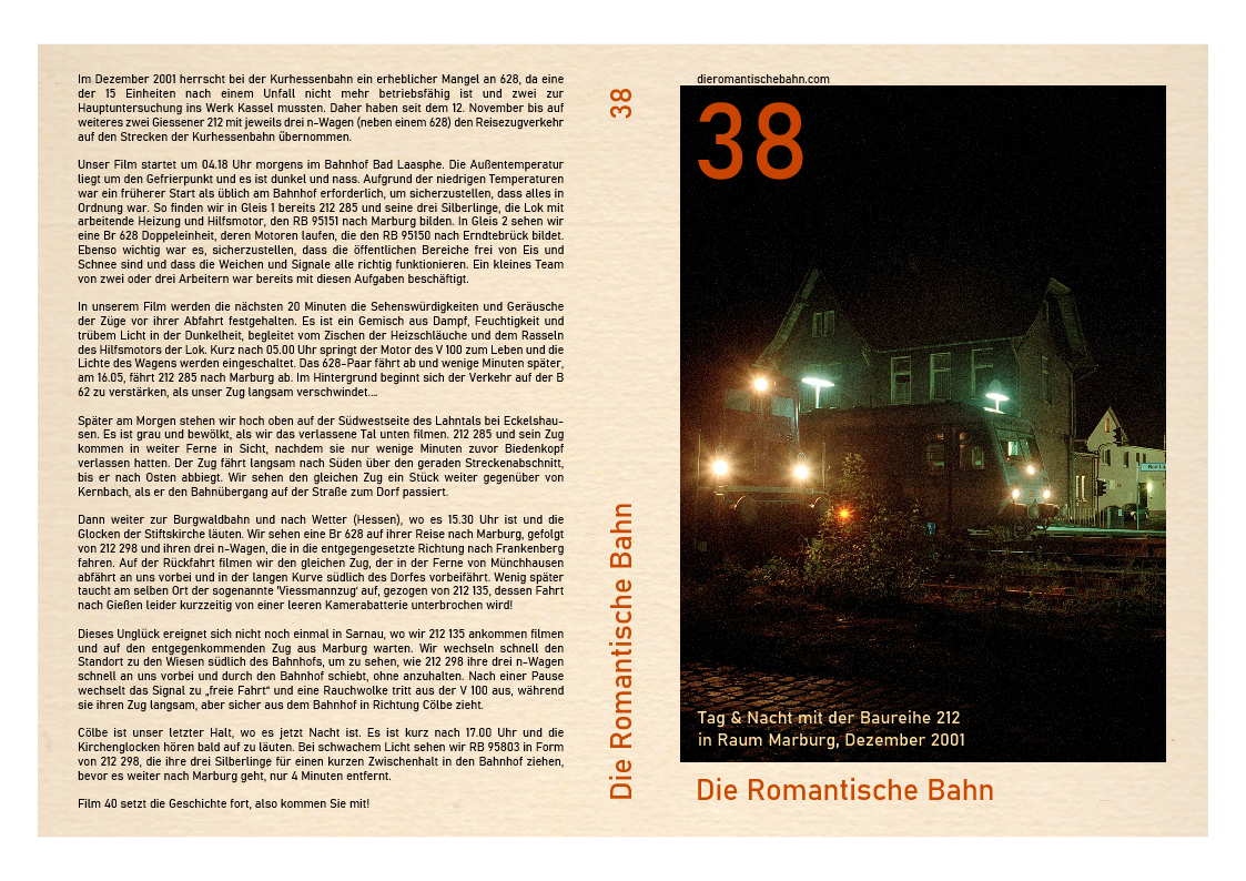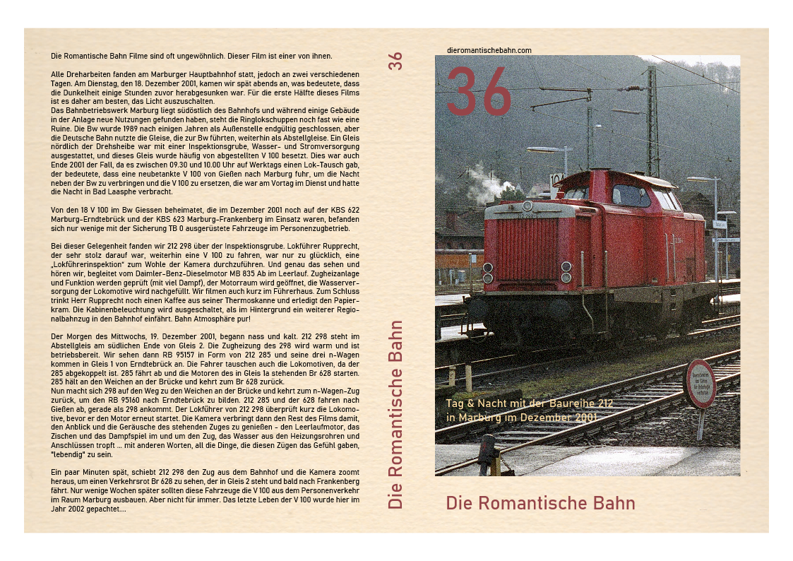 Dieser Film ist einer unserer Besten. Er spielt ganz am frühen Morgen des 8. Juni 2001 in Frankenberg (Eder), wo wir 212 072, seinen Lokführer und einen Rangierer filmen, die einen Viessmannzug nach Allendorf (Eder) zusammenbauen.