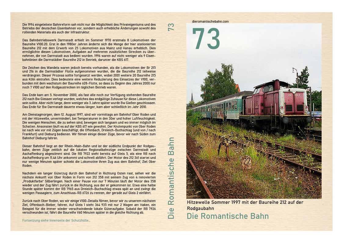 Hitzewelle Sommer 1997 mit der Baureihe 212 auf der Rodgaubahn