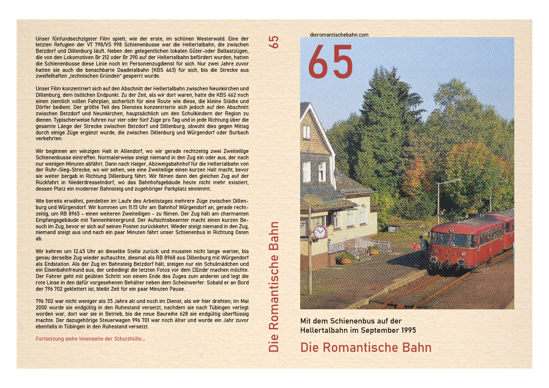 …..796 702 war nicht weniger als 35 Jahre alt und noch im Dienst, als wir hier drehten; Im Mai 2000 wurde sie endgültig in den Ruhestand versetzt, nachdem sie nach Tübingen verlegt worden war, dort war sie in Betrieb, bis die neue Baureihe 628 sie endgültig überflüssig machte. Der dazugehörige Steuerwagen 996 701 war noch älter und wurde ein Jahr zuvor ebenfalls in Tübingen in den Ruhestand versetzt…..